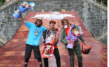 張家界:5月24日,紅牛天梯速降賽在張家界天門山國家森林公園圓滿落下帷幕,來自8個國家和地區的15名國際知名選手聯手為觀眾奉獻了一場震撼表演。來自加拿大的車手加勒特?比特以29.940秒成績奪得速度賽冠軍, ...