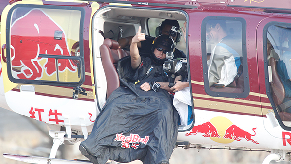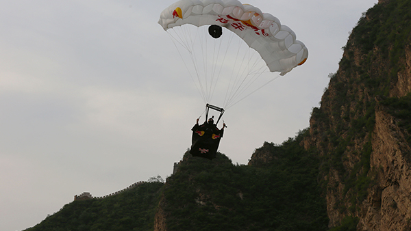 5月29日上午8點1分41秒,美國翼裝飛行大師杰布·克里斯在天津薊縣黃崖關長城成功完成“人箭穿靶”,刷新了翼裝飛行這項極限運動的新高度,同時完成了他在中國翼裝飛行“挑戰(zhàn)三部曲”終極篇。在黃崖關長城上舉行的頒獎儀式上,紅牛公司為杰布頒發(fā)了挑戰(zhàn)成功的紀念獎杯,因為杰布三次在中國地標建筑物上的挑戰(zhàn)對“你的能量超乎你想象”進行了有力詮釋。
