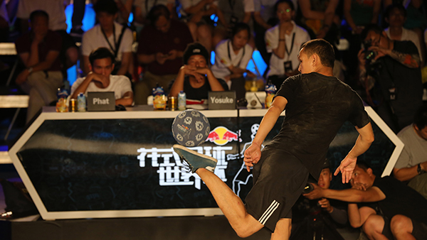 6月25日,2016紅牛花式足球世界杯北京站,同時(shí)也是最后一站的選拔賽在北京798藝術(shù)區(qū)激情上演。正當(dāng)北京國(guó)安與上海申花的中超大戰(zhàn)正在工體如火如荼進(jìn)行時(shí),來(lái)自上海的姚晨敏贏下了一場(chǎng)特殊的“京滬大戰(zhàn)”,拿到了7月9日在北京舉行的紅牛花式足球世界杯總決賽的門票。