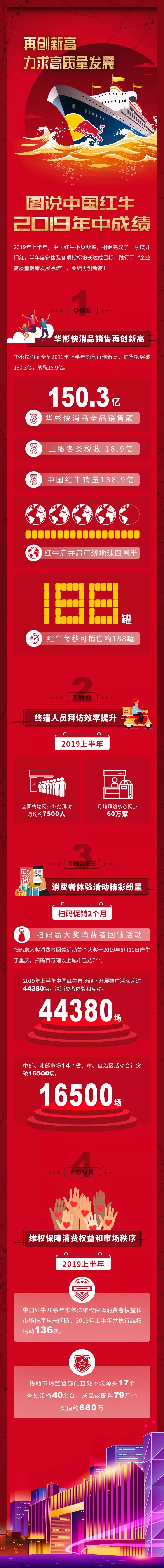 2019上半年,華彬快消品銷售額為150.3億,上繳各類稅收18.9億元;功能性飲料兩個(gè)品牌銷售合計(jì)147.2億元,同期增長3.5%,其中紅牛銷售138.9億元,戰(zhàn)馬銷售額則與去年全年追平,銷售達(dá)8.3億,同期增長47%。