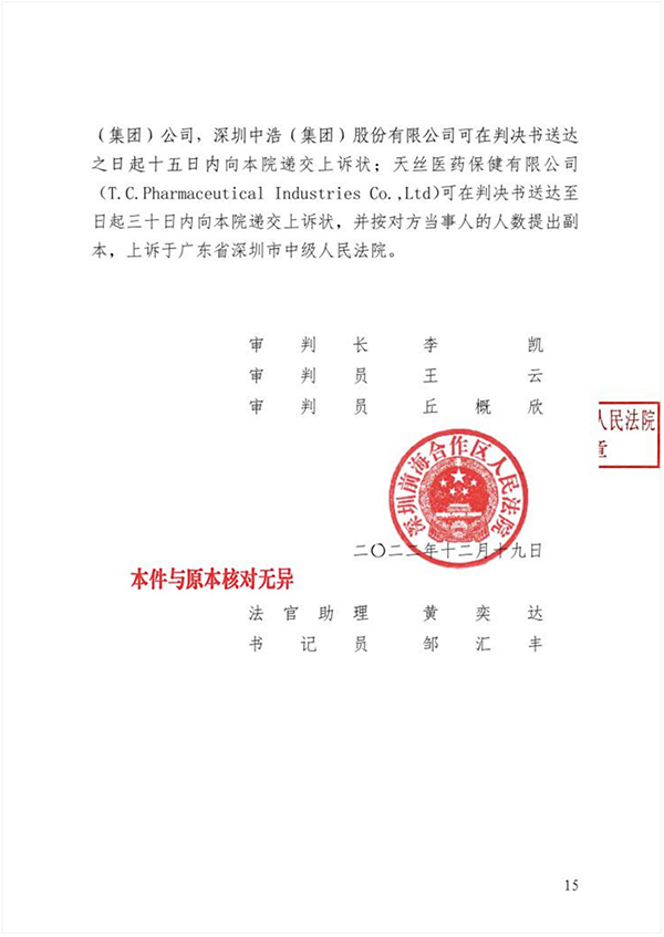 12月29日,紅牛維他命飲料有限公司(下稱“中國紅牛”或“我司”)收到廣東省深圳前海合作區人民法院民事判決書((2019)粵 0391 民初725 號,下稱“判決書”),支持了我司的全部訴訟請求,判項全文如下: