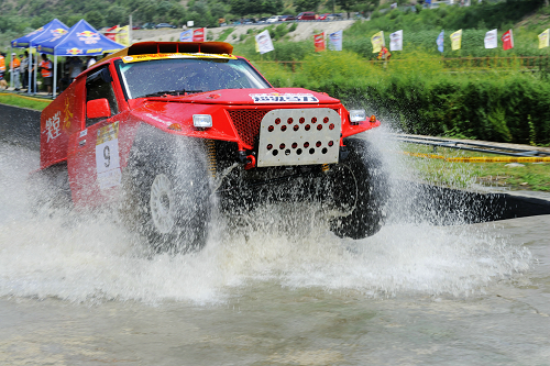? ? ? ? 2014“紅牛超級(jí)馬力”越野賽汽車(chē)組比賽于2014年7月19日在懷柔琉璃廟白河灣汽車(chē)公園拉開(kāi)戰(zhàn)幕。對(duì)于觀眾而言,飛車(chē)、過(guò)水、飄移都是最喜歡的鏡頭。在各類障礙中,越野賽車(chē)經(jīng)過(guò)一深一淺兩個(gè)過(guò)水障礙最具視覺(jué)沖擊力,每每賽車(chē)沖進(jìn)水中濺起幾米高的水花都會(huì)贏得現(xiàn)場(chǎng)觀眾的一陣喝彩。最近北京頻發(fā)暴雨,很多地方都成為了“積水潭”,突發(fā)水漫金山讓很多輛民用車(chē)都被水淹沒(méi)熄火,車(chē)主只能棄車(chē)逃生。當(dāng)觀眾看到在深水池中已經(jīng)被水幾乎淹沒(méi)的賽車(chē)不禁發(fā)出感慨:自家的車(chē)在這樣的深水中肯定歇菜,專業(yè)賽車(chē)是如何做防水的呢?