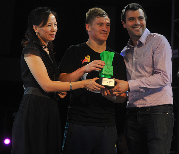 ? ? 此時,現場觀眾和參賽選手早已按耐不住激動的心情,在主持人張斌尚未宣布裁判結果時,就一擁而上將比賽的舞臺擠得水泄不通。顯然,所有人都已知道冠軍的名字,亨德森在決賽的表現無懈可擊。當張斌高聲宣布亨德森為本屆世界杯冠軍時,激動的人群已將他團團圍住,讓這位中國迷享受了來自古老東方國家最熱情的擁抱。